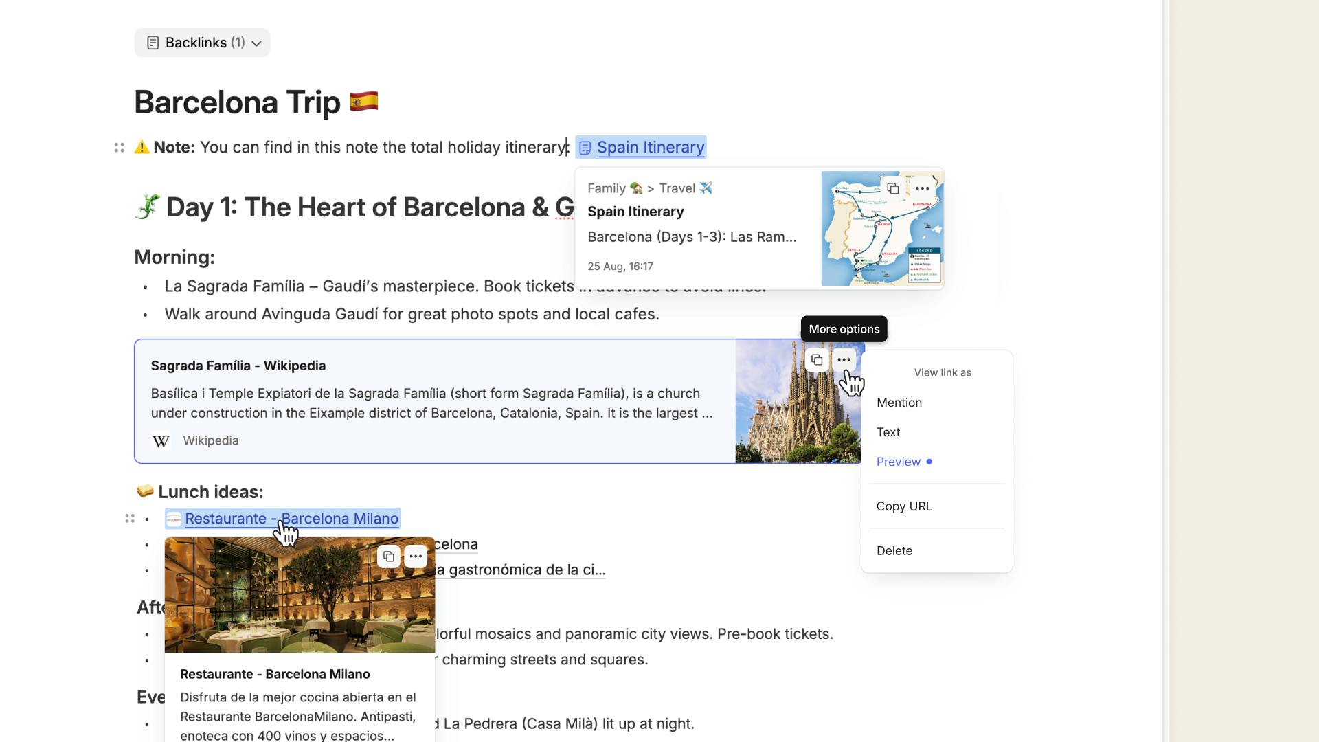 Better link display options. Released December 2025. Links are now easier to recognize and customize in your notes. Choose how they appear: as a mention, plain text, or a content preview. And when the title of the linked content changes, the mention updates automatically.