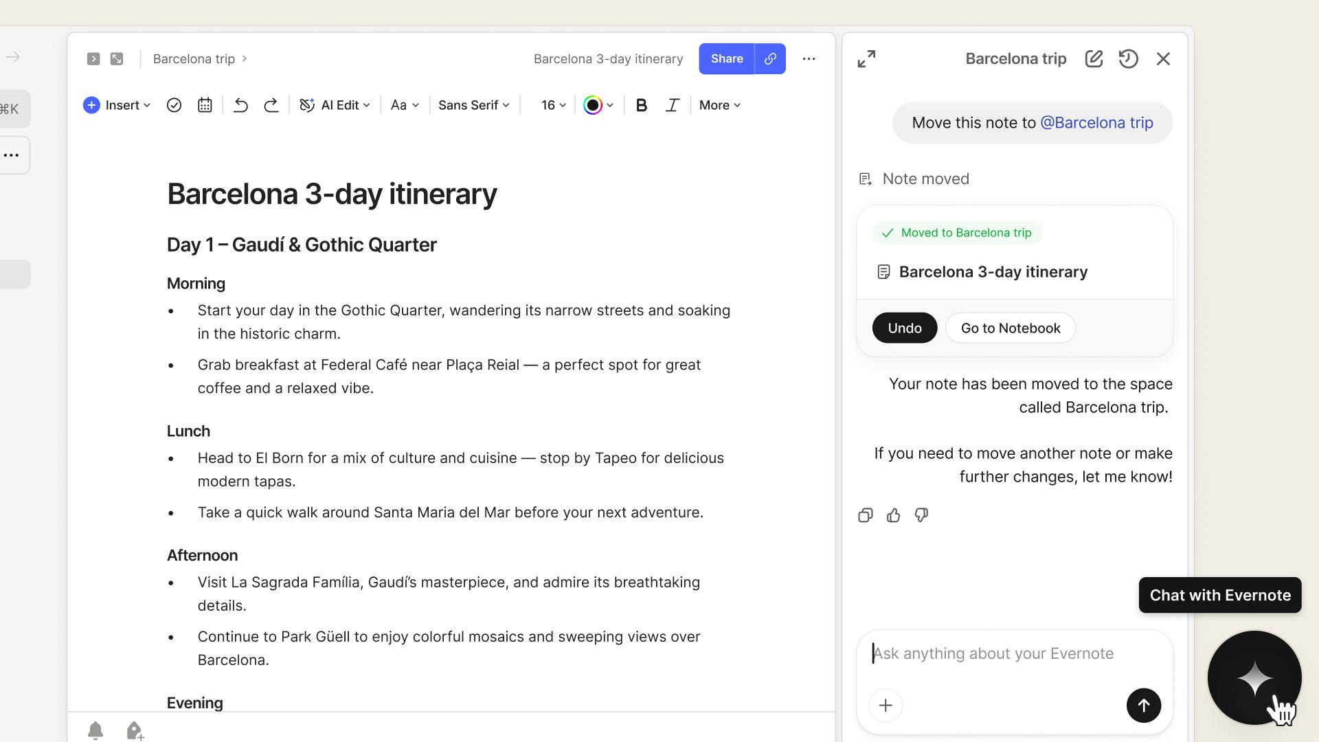Note-taking is at the heart of Evernote, so we continued to refine the Editor experience to feel simpler and smoother. We removed friction from core workflows like creating, organizing, and formatting notes.