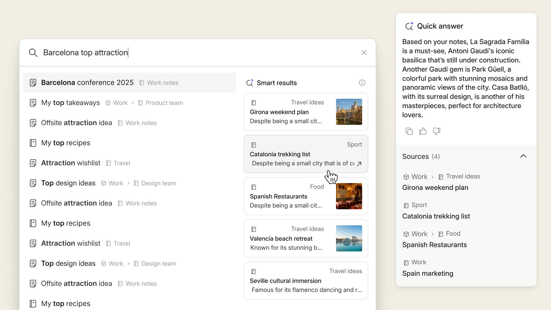 Describe the idea, topic, or task you’re looking for, and Semantic Search will find the most relevant notes, even if the phrasing doesn’t match.