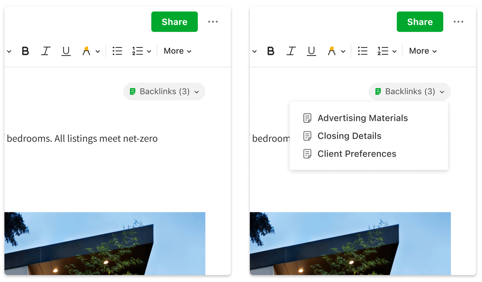 These are just a couple of ways you can give your notes more context with backlinks. Navigate your web of information faster and tap into your team’s shared knowledge. Make more connections and keep them in view, so you can make better use of all your notes.