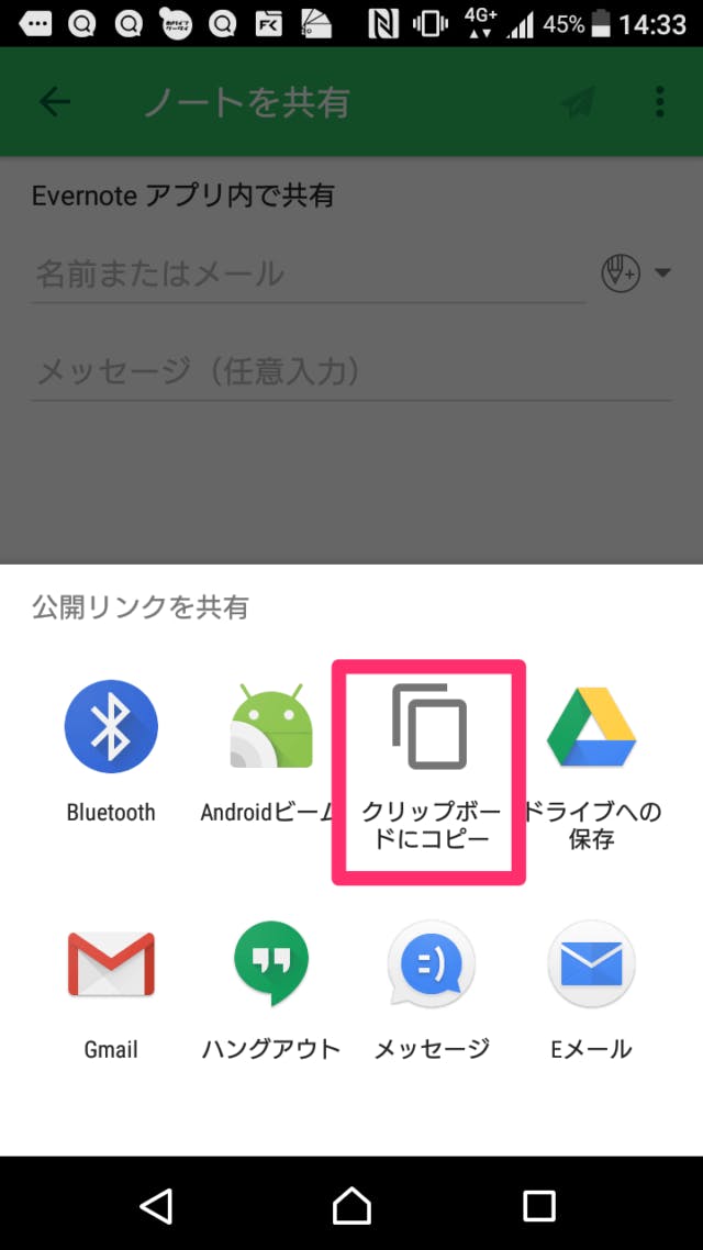 3. そのまま外部アプリなどに送ることもできますし、「クリップボードにコピー」を選ぶと、お好きなところに貼り付けができます。