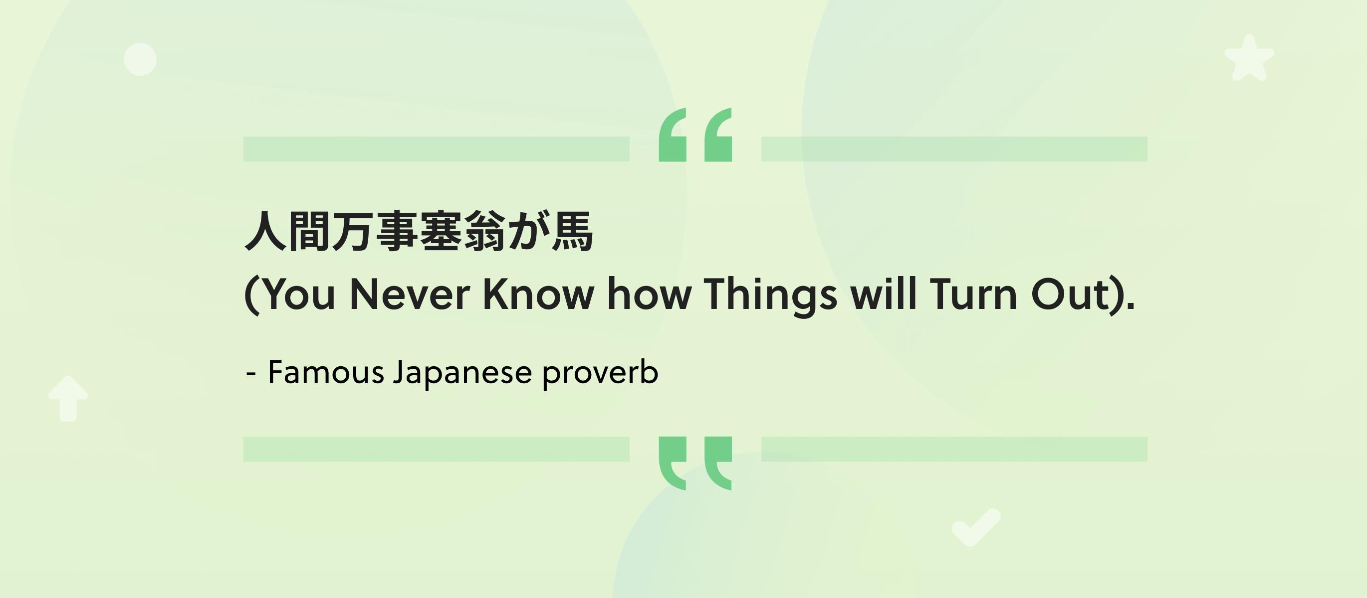 - “人間万事塞翁が馬 (You never know how things will turn out)” —Japanese proverb
