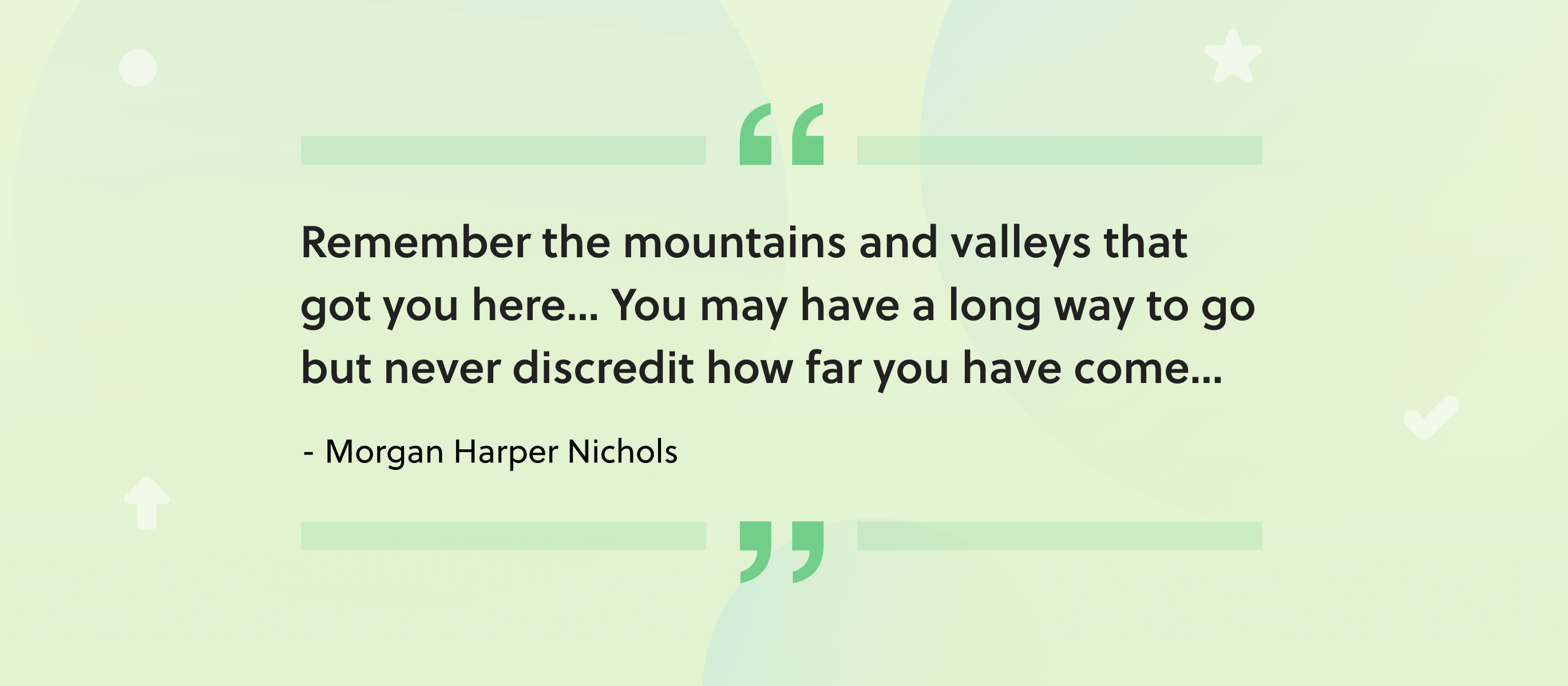 - “Remember the mountains and valleys that got you here. Remember the things you never thought you would accomplish but did. You may have a long way to go but never discredit how far you have come.” —artist Morgan Harper Nichols