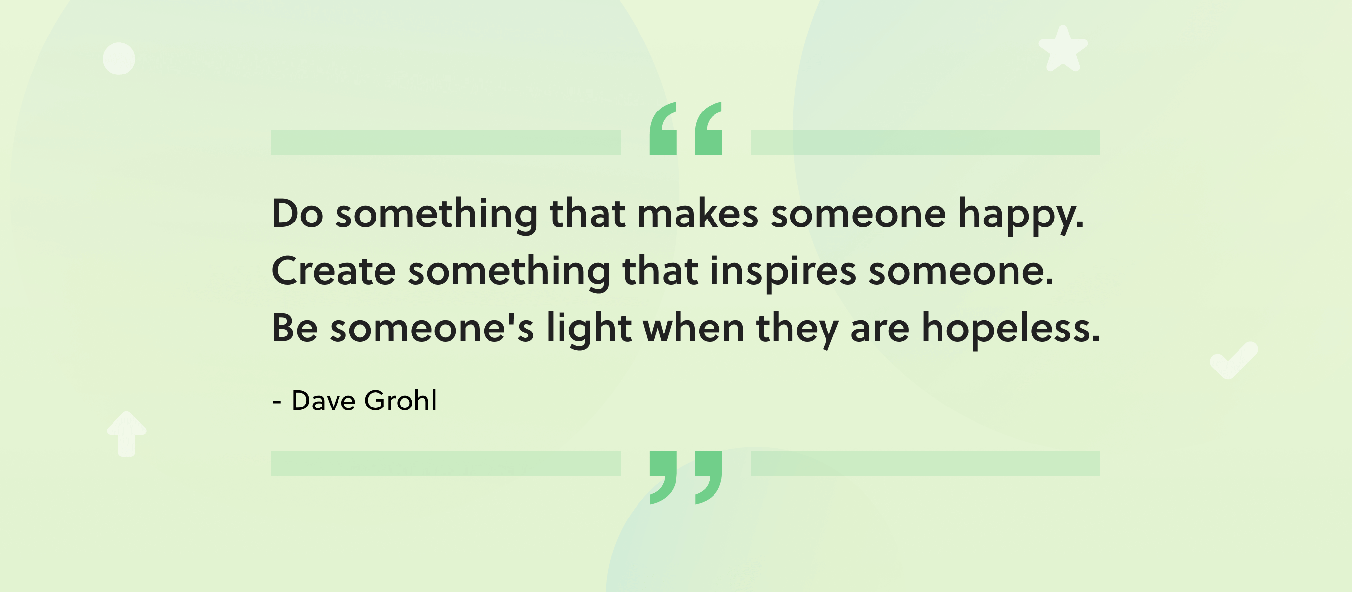 - “Always have the highest bar for yourself. Wake up every day and no matter how crappy you feel, want to change something for the better. Do something that makes someone happy. Create something that inspires someone. Be someone’s light when they are hopeless.” —musician Dave Grohl