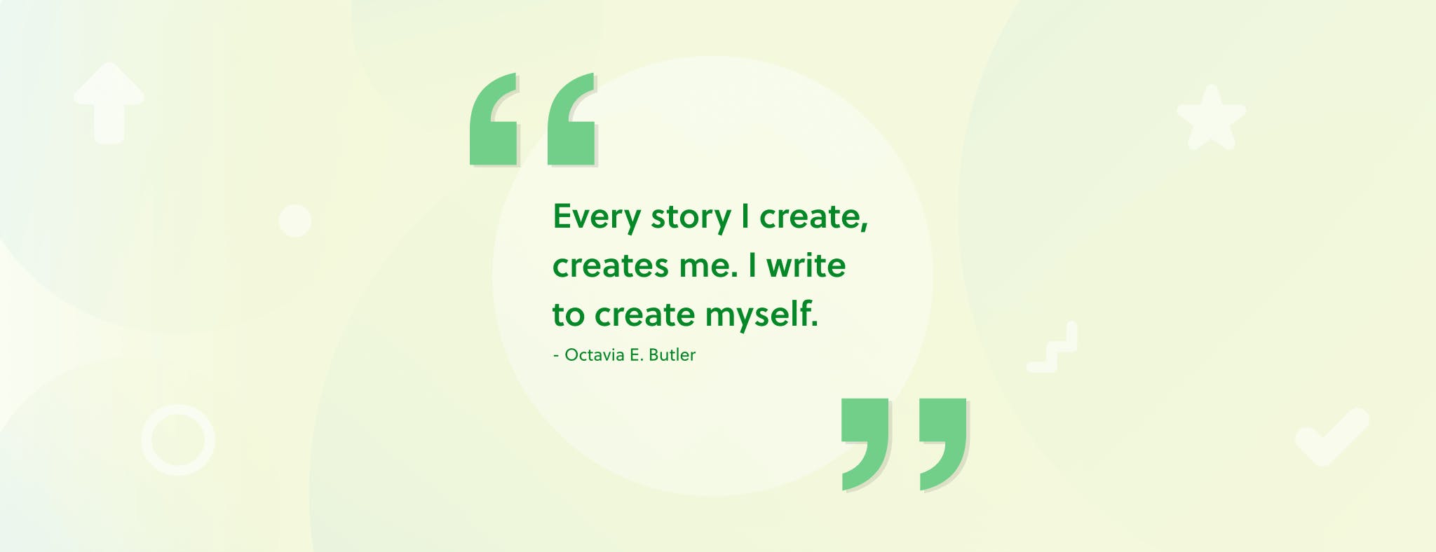 - “Every story I create creates me. I write to create myself.” —author Octavia E. Butler