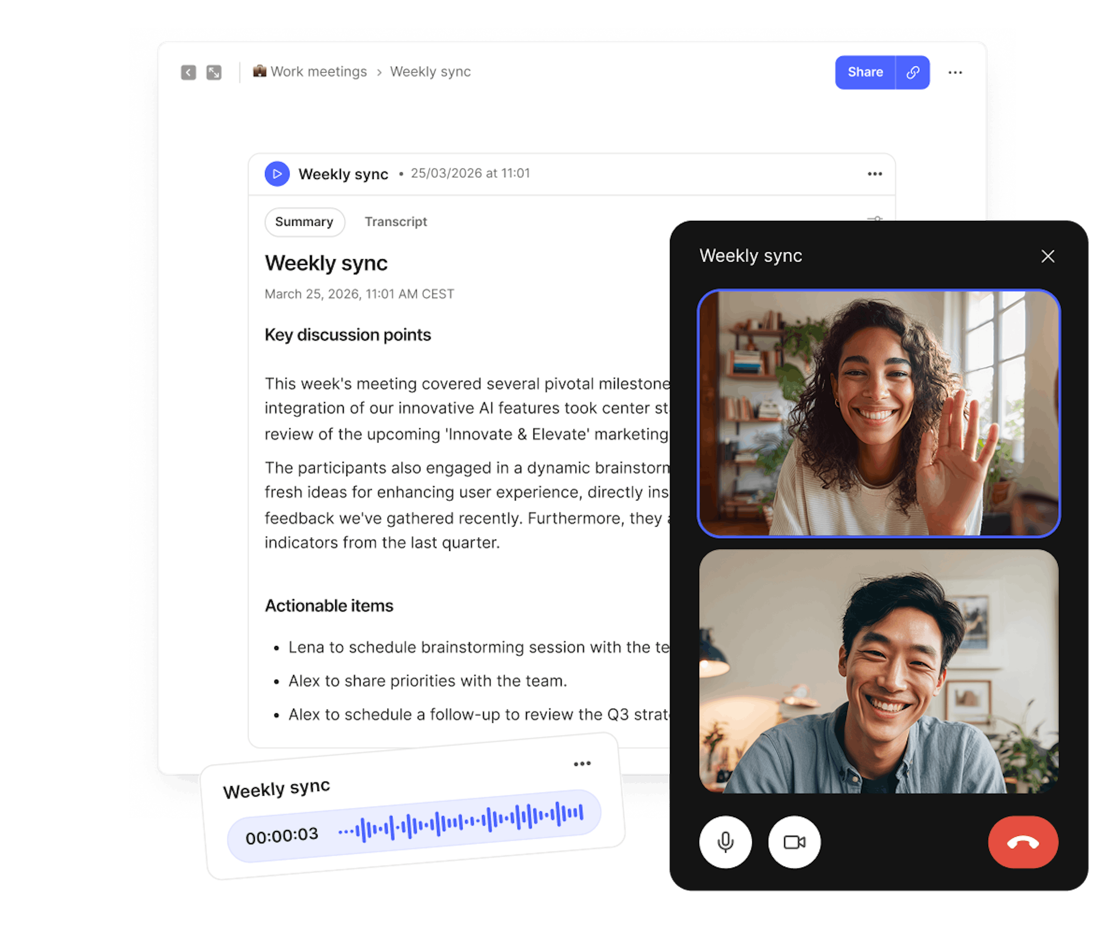 Resta concentrato durante le riunioni sapendo che avrai sempre una registrazione affidabile di ogni dettaglio.