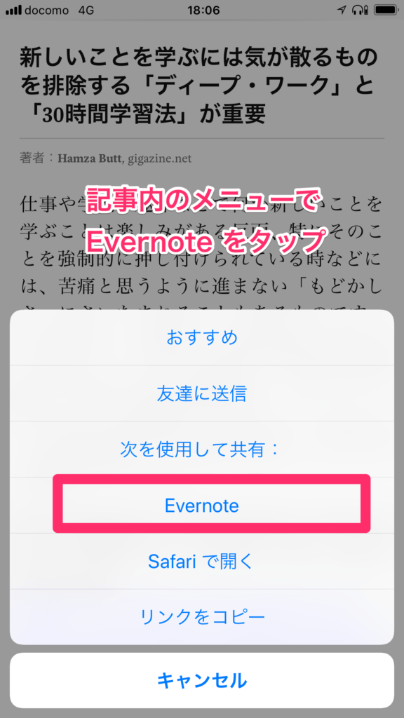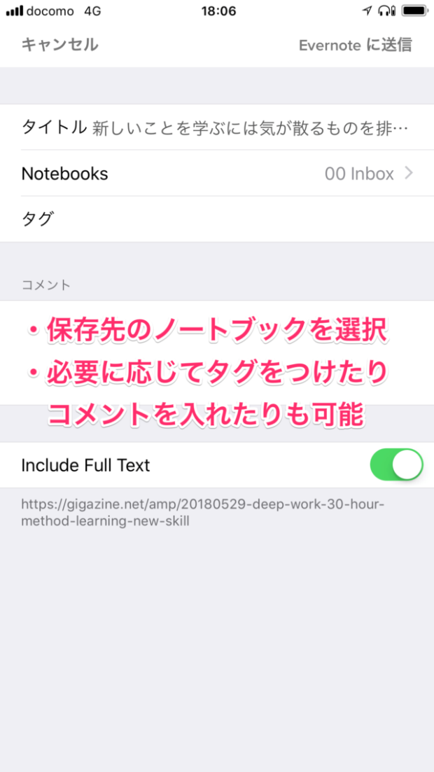 Web クリッパーで保存しておくという使い方。Web ページを見たまま手軽に保存できますし、仮に元の記事が消えてしまっても Evernote に残っているので安心です。また、私が最近よく使うのは「