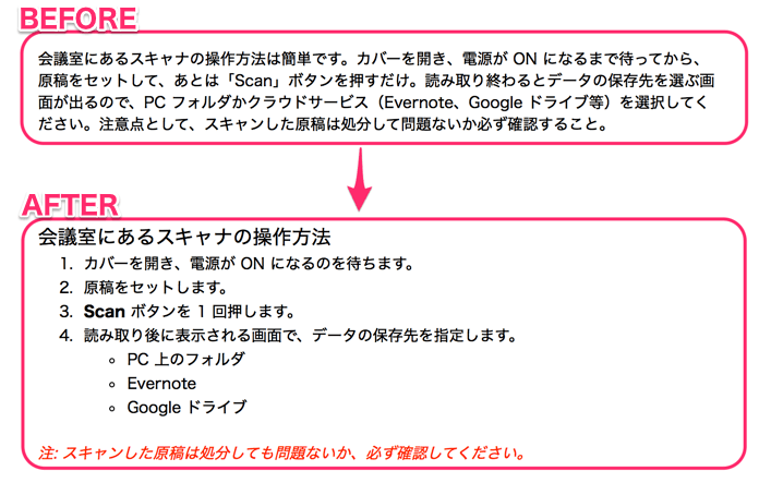 きれいに盛り付けられた料理の方が食べたくなるのと同じように、見た目が整ったノートの方が読みたくなるものです。それが他人にも確認してもらう必要がある仕事のノートであれば、なおさらです。視覚的な読みやすさを少しだけ意識しながらノートの中身を整理して、頭の中もスッキリさせましょう。