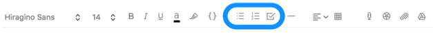 レポートなど長文の原稿を執筆する場合は別ですが、書き出したメモをリスト化した方が、項目を体系的に整理しやすくなることがあります。Evernote では箇条書きリスト、番号付きリスト、チェックリストの 3 種類が利用可能です。
