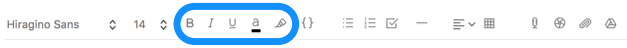 を変えたりするだけで効果があります。目立たせたいテキスト(文字列)を選択し、ノートエディタの書式バーからお好きなツールをクリック・タップしてください。