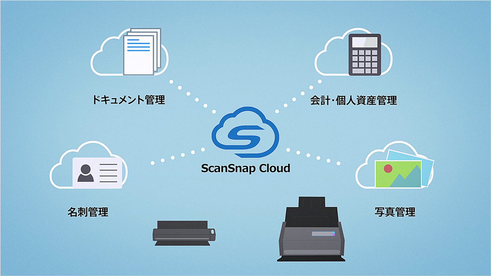 ScanSnap を使用するなら、「ScanSnap Cloud」と連携させて使う方法がおすすめです。ScanSnap Cloud は、ScanSnap を使って取り込んだ原稿種別を自動判断し、あらかじめ設定したクラウドサービスに振り分けて保存するサービスです。パソコンからはもちろん、スマホだけでも細かな設定ができ、スキャナ本体と ScanSnap Cloud を一度連携させれば、後はスキャナ単体でも使用できます。