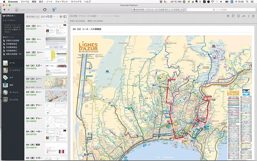 酒井:出張用の書類をペーパーレス管理するのに Evernote を使っています。仕事がら国内外の出張が多いので、ホテルの詳細、地図、電車の旅程表、航空券(e チケット)、現地の美味しいお店などの情報、その他すべての情報を PC の Web クリッパー経由で Evernote に保存しています。